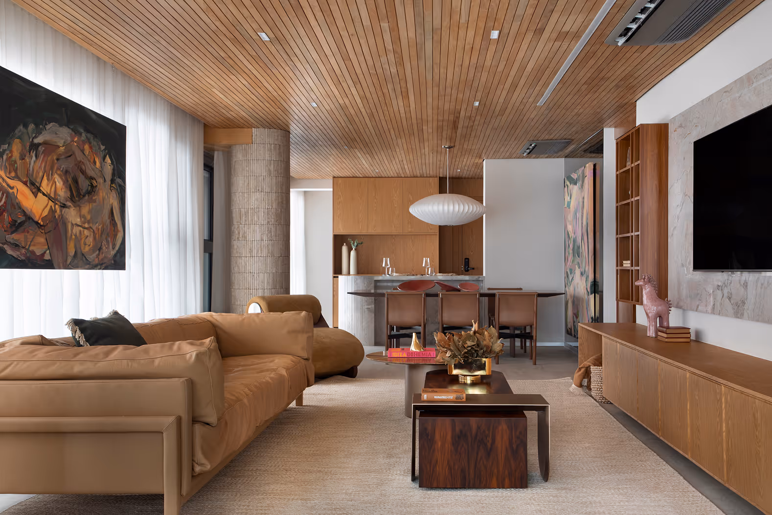 O Apartamento Lina Jardins, assinado pelo La Rous Studio, nasce da valorização da materialidade e da autenticidade dos materiais naturais. O projeto foi concebido para um cliente que visita São Paulo com frequência e buscava um refúgio urbano sofisticado, capaz de traduzir sua conexão com a cidade e com a arte.